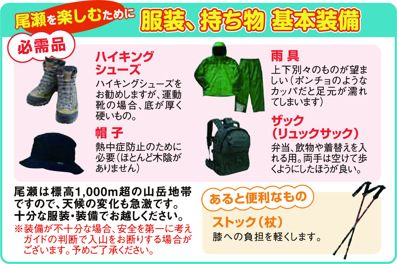 尾瀬を楽しむために…服装、持ち物 基本装備