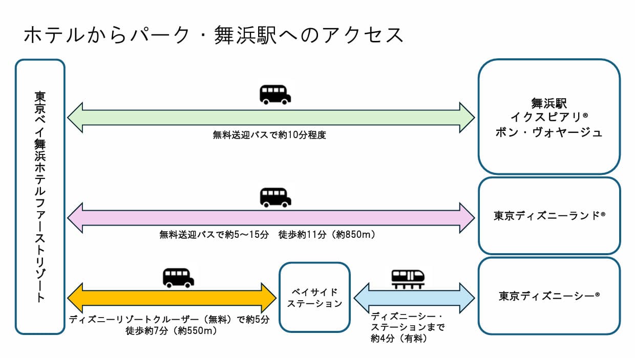 - ホテル⇔パークや舞浜駅は無料のシャトルバスで約10分!らくらく移動♪